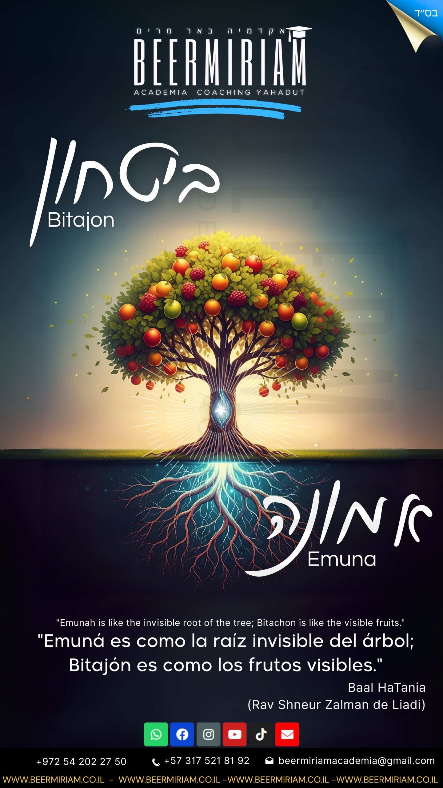 Así como un árbol saludable produce frutos abundantes porque sus raíces están firmemente ancladas en la tierra, una persona con una Emuná sólida inevitablemente manifestará Bitajón en su vida, irradiando la presencia Divina a través de sus frutos visibles: su paz interior, su resiliencia y su capacidad para superar desafíos con esperanza.